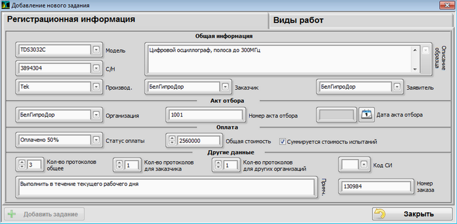 - Данные о выполненных работах