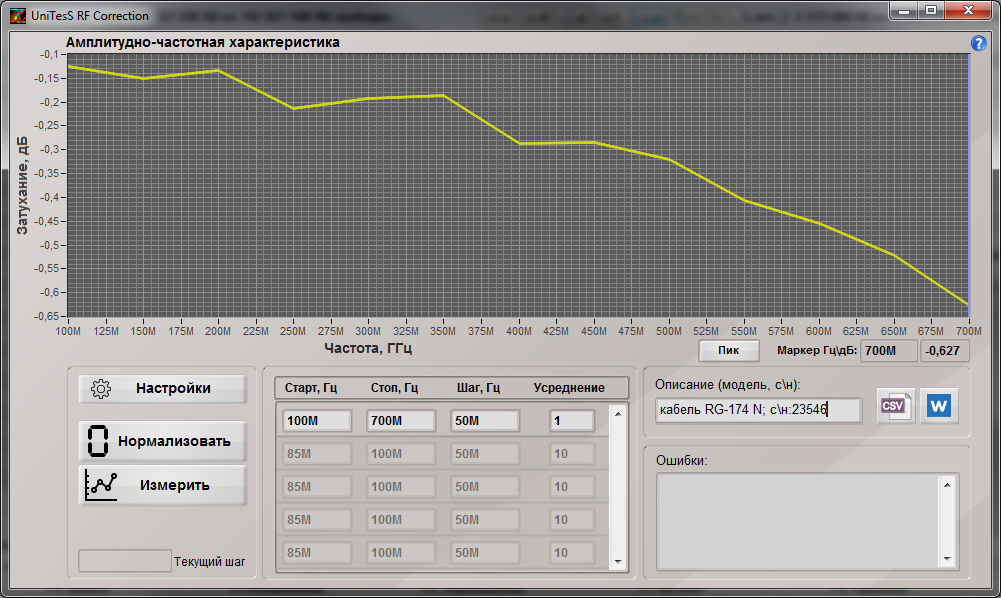 Результаты измерений могут сохраняться в форматах MS Word и csv. При этом структура csv-файлов совместима с программным обеспечением UniTesS Manager.